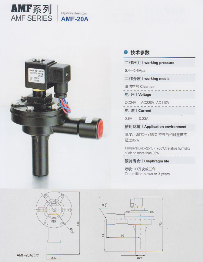 此閥的進氣口直接安裝在氣包上,故稱為淹沒式脈沖閥或直角式脈沖閥。
