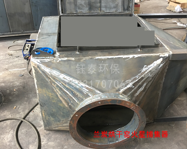 在處理蘭炭烘干窯廢氣的袋式除塵器中,爐子中的已燃粉塵有可能隨風管氣流進入箱體,而使堆積在濾布上的粉塵著火,造成事故。火星捕集器的作用是:爐氣和煙氣的出口、阻擋未燃盡火花的排出和大部分煙塵的外逸、保護后部袋式除塵器的濾袋。