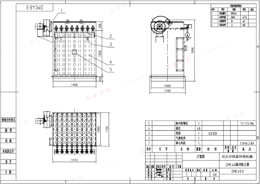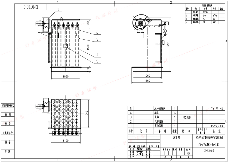 | 設備型號 | 處理風量(m³/h ) | 濾袋數量(只) | 過濾面積(㎡) | 電機功率(Kw) |