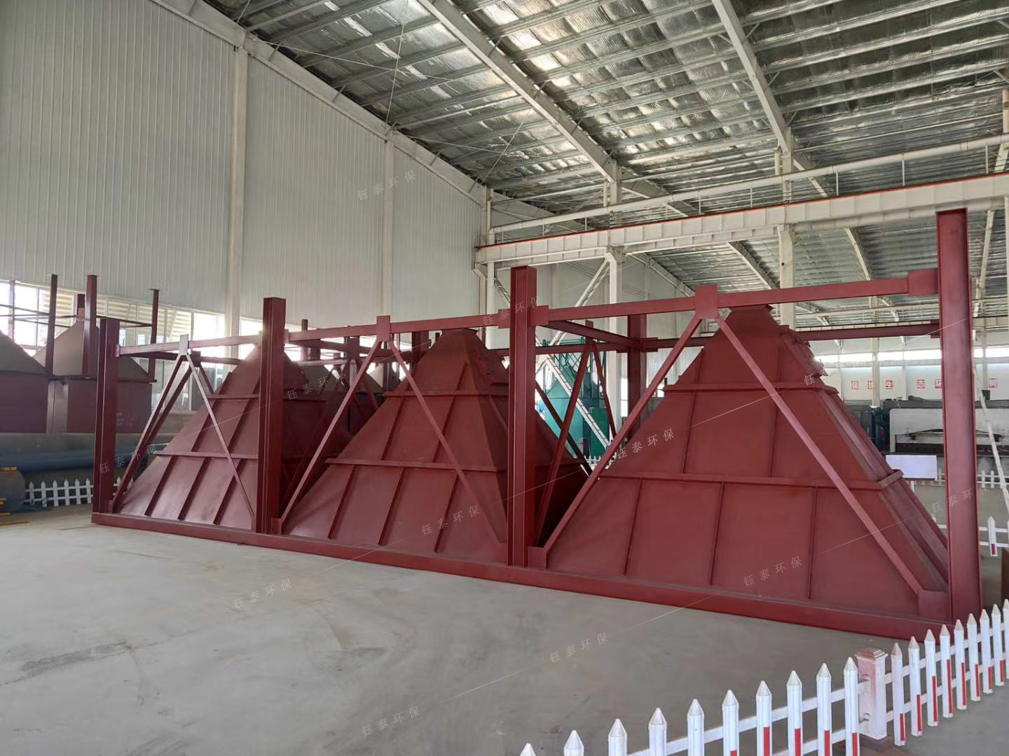 烘干 機(jī)除塵器將普通鋼板制成的花板換為不銹鋼材質(zhì)的,處理的濾袋選用氟美斯,骨架采用有機(jī)硅處理(或不銹鋼材質(zhì)制成)。除塵器內(nèi)部用環(huán)氧聚脂涂料經(jīng)過(guò)三層處理。外層用10公分厚的輕質(zhì)巖